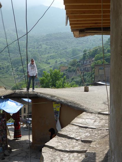 The city of Masouleh, per se, is an incredible spectacle. The houses are built on a steep slope, such that each house's courtyard is another house's rooftop. In other words, as you stroll the alleys of the city, you are literally walking over the roofs and courtyards of the houses.