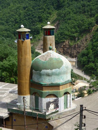 Von Fuman führt eine schmale geteerte Straße zum 33 Kilometer entfernt an den Elburz-Abhängen gelegenen idyllischen Das Gebirgsdorf Masouleh an den Abhängen des Elburz-Gebirgszuges, der sich von Teheran bis an das kaspisches Meer erstreckt.