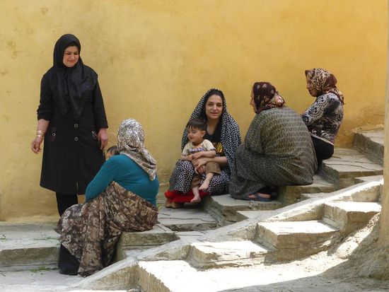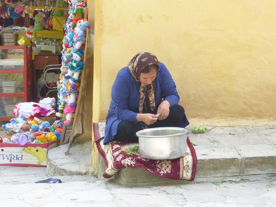 Das Dorf ist aufgrund seiner idyllischen Lage und der einheitlichen Bauwelse mit ockerfarbenem Verputz für die Iraner ein belibetes Ausflugsziel. Entsprechend touristisch zeigt sich der Ortseingang.