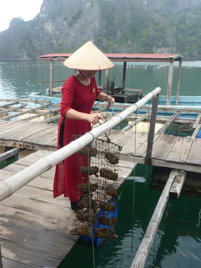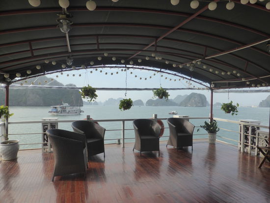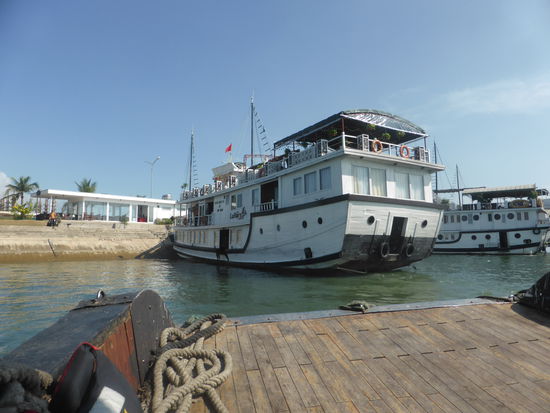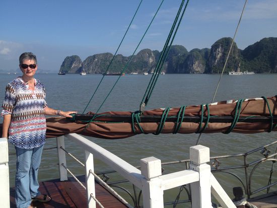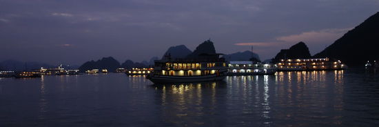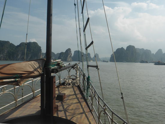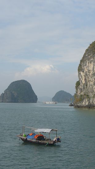 "Die verkarsteten Felsnadeln. Bergkegel und Zuckerhüte der über 3000 Kalksteininseln der Ha-Long-Bucht, die vielleicht spektakulärste Sehenswürdigkeit Vietnams, wurde von der UNESCO 1994 als Weltkulturerbe anerkannt. Ein barockes Naturtheater aus Menhiren, kariösen Drachenzähnen, versteinerten Mammuts, erstarrten Sauriern und Feen. ... Nüchtern betrachtet handelt es sich um eine uralte geologische Formation - die Überreste gewaltiger Muschelkalkbänke, die vor 300 Mio. Jahren heranwuchsen und stehenblieben, als sich das hinterindische Festland aus dem Meer empor hob. Der Meeresspiegel stieg und fiel im Rhythmus von Eiszeiten und Wärmeperioden, und Wind und Wellen taten das ihre, das ursprünglich flache Kalksteinplateau im Lauf von Jahrmillionen in abertausende Inseln und Felsnadeln zu zersplittern und bizarr zu verformen, als seien sie tatsächlich das Werk eines urzeitlichen Fabelwesens." (Sachinformationen aus Know-How)