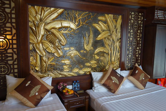 Das Schiff ist mit 16 Personen besetzt, hat im oberen Deck 4 Kabinen, davon zwei mit Balkon und die restlichen im Unterdeck. Beim Betreten unseres Zimmers sind wir baff, das hätten wir auf dem kleinen Schiff nicht gedacht. Luxus Pur incl. Klimaanlage, allerdings ohne WLAN (!!!) Kann man ohne überhaupt noch überleben?