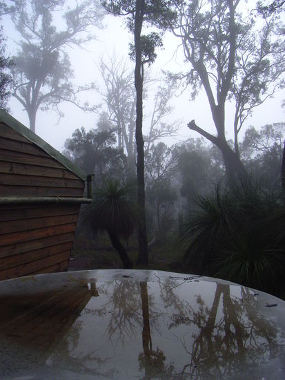 1 Grad Celsius war es die Nacht in dieser Huette- zu kalt fuer meinen Schlafsack und ein paar Studenten aus Perth haben die Nacht sogar um die Feuerstelle verbracht.