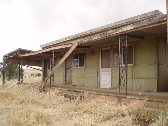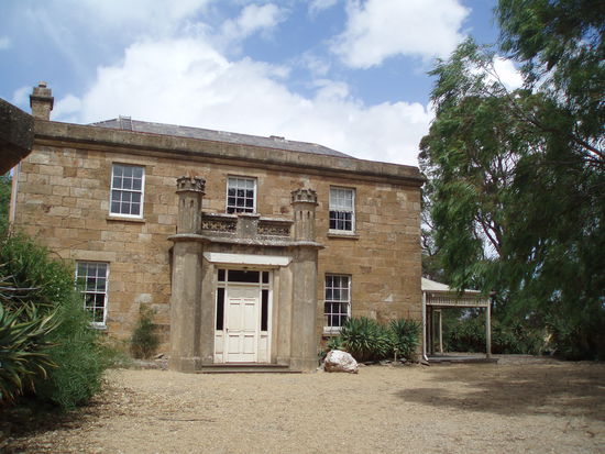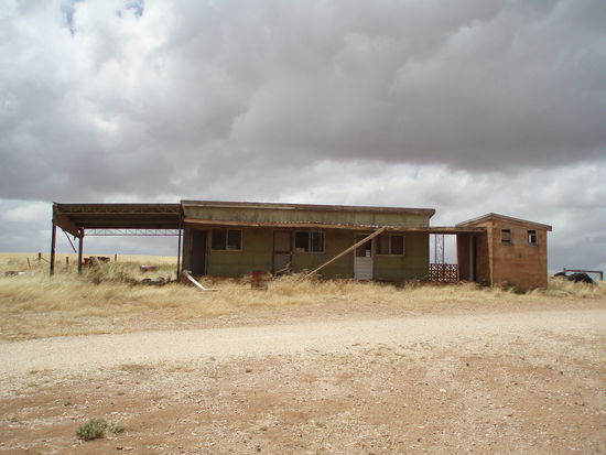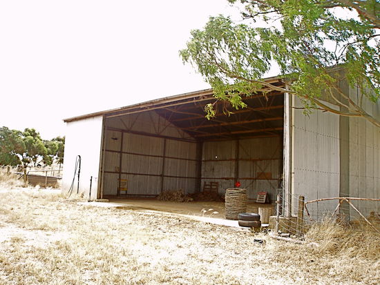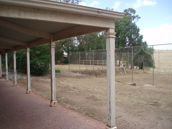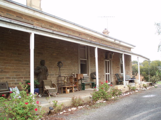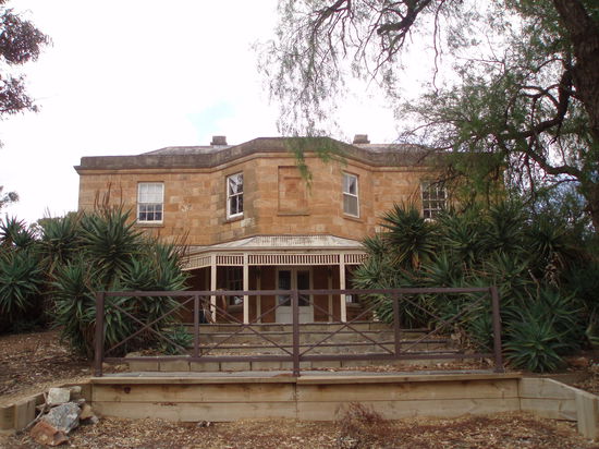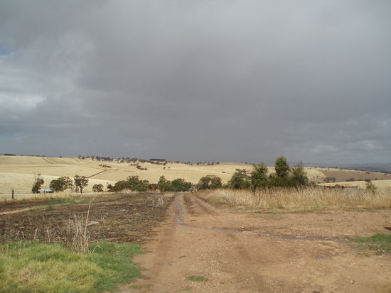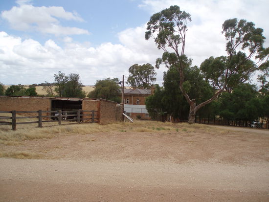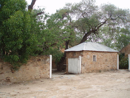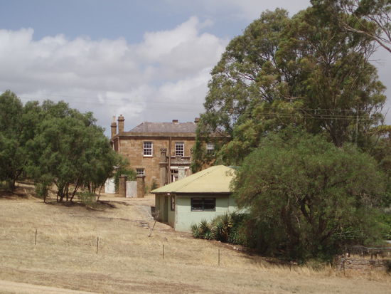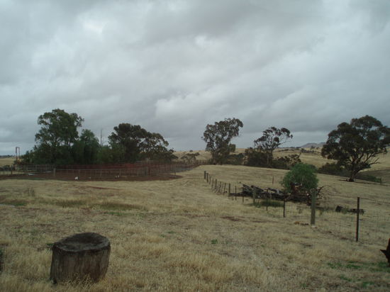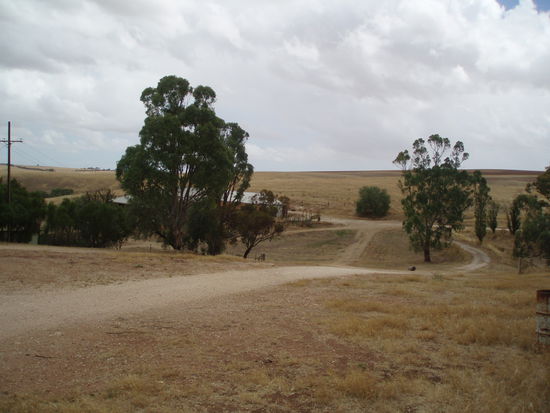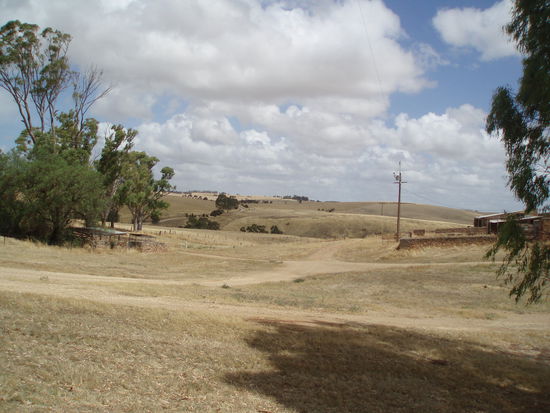 Dann fuhren wir endlich nach Drovers Run - bzw. nach Kingsford, so heißt diese Farm in echt. Es regnete immer noch ziemlich, aber wie schon gesagt, es war trotzdem mein totaler Glückstag. Denn Dianne hatte erst vor ein paar Tagen die Erlaubnis bekommen, Besucher nun nicht nur bis ans Tor der Farm zu führen, sondern auf das Gelände zu fahren, so dass man sich dort außerhalb des Haupthauses umsehen konnte. Vorher konnte man die Häuser nur von einiger Entfernung betrachten. Aber wir fuhren nun direkt zum Haus, und genau jetzt hörte es, bis auf ein paar Tröpfchen, auf zu regnen!
