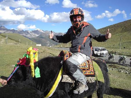 igendwo unterwegs sehen wir auch den mt. YALA, dem man sich durch eine staubstrasse naehern kann und irgendwann ueberqueren wir auch besagten pass wo heinz natuerlich wieder fuer einen yak-ritt zu haben ist, auch wenn er nur auf der stelle stattfand.