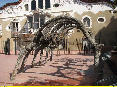 Vor dem Haus steht eine Art großer Spinne, die mit ihrer Formgebung sofort an Dali erinnert.