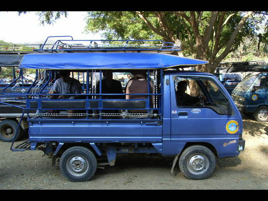 das gefahert (ein songtho) unseres fahrers, worauf er maechtig stolz ist. als es bergauf ging, kam dieses fahrzeug mit uns europaern und kanadiern an seine grenzen. doch es verlief alles reibungslos auf der holprigen strasse...