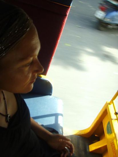 ... in der Rikscha zum thailaendischen Konsulat, um mein Visum zu beantragen. Ihr glaubt es nicht, aber ich habe doch tatsaechlich innerhalb von EINEM Tag das Visum bekommen ... ganz ohne Bakschisch, ganz ohne Nerventerror, ganz ohne Probleme ...und das in INDIEN! Ich bin immer noch ganz baff!