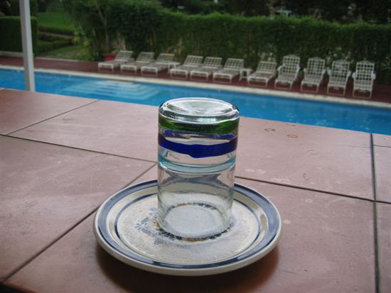 Das Glas im Salz drehen, damit eine schöne Salzkruste entsteht.