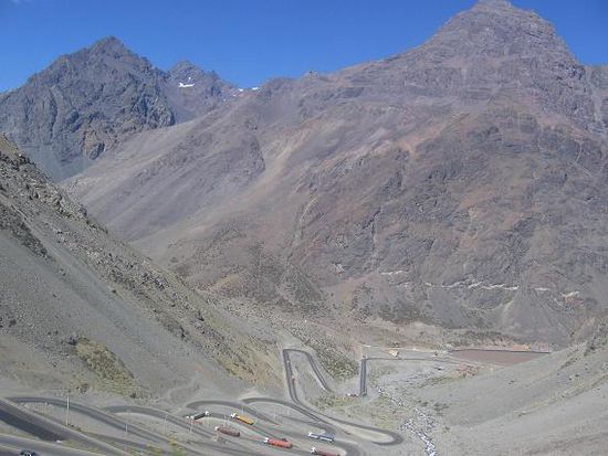 Mendoza, die Weinhauptstadt Argentiniens, war ein Fixpunkt auf unserer Reiseroute, schon allein um den argentinischen Wein auf Herz und Nieren pruefen zu koennen. Nachdem wir nach der Rueckkehr von der Osterinsel noch zwei Ausruh- und Organisiertage in Santiago de Chile verbracht haben, fuhren wir am 18. ueber den Paso Los Libertadores nach Mendoza in Argentinien. Die Strasse beginnt hinter Santiago schnell anzusteigen und windet sich in unzaehligen Serpentinien die Anden hinauf. Man passiert so einige Schilifte, wie zum Beispiel im Nobelschiort Portillo gleich vor der Grenze. Im Sommer ist dort allerdings ueberhaupt nichts los, nur ausgestorbene Touristenbunker stehen dort in der Gegend herum.