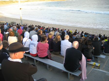 Abends (nach einem lecker Thai Essen am Strand) geht's zur Pinguin Parade. Ca. 2,000 andere wollen sich das Spektakel auch nicht entgehen lassen. Die Viecher lassen auf sich warten, zum Glueck haben wir unsere Jacken dabei, den es windet ganz schoen. Als es bereits recht dunkel wird kommen die ersten Pinguine an den Strand....echt suess! Leider darf man keine Bilder machen, das wuerde die Tiere zu arg stoeren (kann ich verstehen).