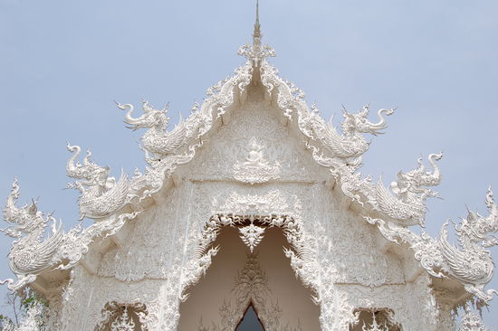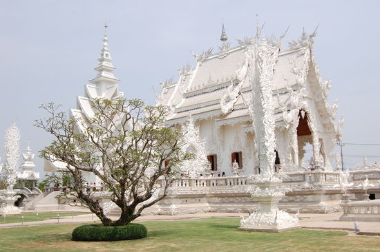 Nächster Halt war die prachtvolle weisse Tempelanlagen Wat Rong Khun zwischen Chiang-Mai und dem goldenen Dreieck. Dieser Tempel war sehr schön und mal ganz anders, da er komplett in weiss erstrahlt. Am Tempel wird von Innen und auch von Außen immer noch gebaut, was wahrscheinlich noch ewig dauern wird, da alles in Handarbeit gemacht wird.