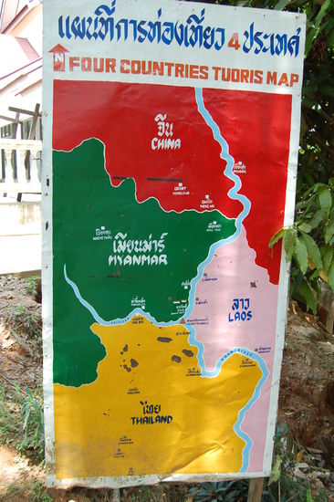 Nach der Bootstour auf dem Mekong fuhren wir weiter entlang des Flusses Ruak nach Mae Sai, zum nördlichsten Punkt Thailands, wo reger Grenzverkehr zwischen Thailand und dem ärmlichen Myanmar herrschte. Entsprechend viele Stände und Geschäfte gibt es dort, aber die Armut und Not der Gegend ist durch ärmlich gekleidete Kinder und viele Bettler allgegenwärtig. Hier hatten wir ca. eine Stunde Aufenthalt, da einer aus unserer Gruppe mal eben kurz Aus- und wieder Einreisen musste, damit sein Visum wieder neu beginnt.