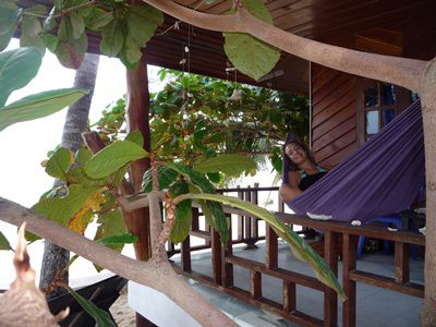 Unsere neue Unterkunft ist diesmal endlich direkt am Strand! Vom Balkon zum Meer sinds eine Palme und 2 Meter.