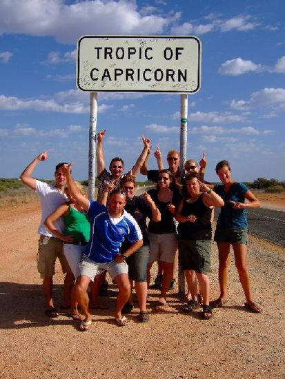Auf der laaaangen Fahrt kamen wir an einem Schild TROPIC OF CAPRICORN vorbei, welches der Südlichste Sonnenwendepunkt darstellen soll wo der Tag am Längsten ist .......und der liegt ............ nun rate doch mal ........... natürlich in AUSTRALIENS ....... Somit schon der 1. Halt, um ein Pic zu knipsen!