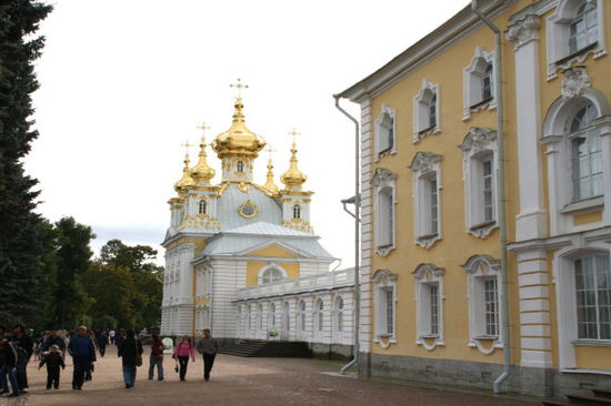 Pünktlich gegen 7.30 Uhr heißt es heute wecken, denn 8.00 Uhr legen wir in St. Petersburg an und 9.00 Uhr geht es mit einem kleinen Zwischenstopp an der Auferstehungs Kathedrale des Smolnyi-Klosters in den Peterhof außerhalb der Stadt. Wir haben Glück, denn heute ist der letzte Tag im Jahr, wo die Wasserspiele in Betrieb sind. Wettermäßig haben wir wieder auch Glück, denn der Regen hat aufgehört, welcher jedoch unmittelbar zu Petersburg gehört und in Minuten da ist bzw. sich wieder verzogen hat.