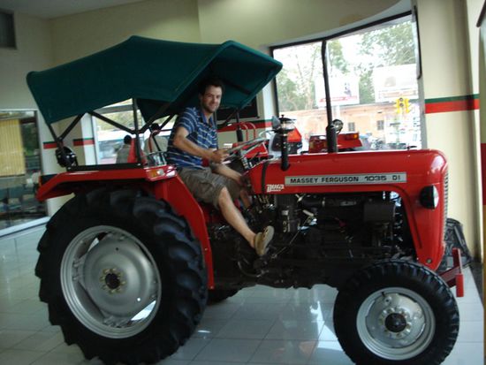 Seine Eltern haben in Irland eine kleine Farm und seit 1972 gehört da auch ein derartiger Traktor dazu. Hier in Indien ist das aktuell das meistverkaufte Modell, Kostenpunkt: ca. 8000 Euro.