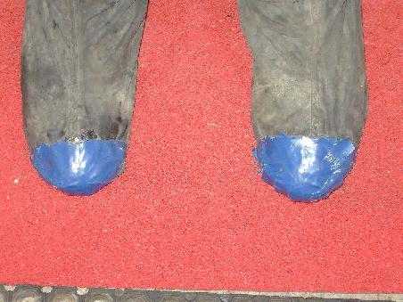 deutsche ingenieursarbeit (das blaue isolierband) mit indischem outsourcing (dem naehen davor) verbunden ...