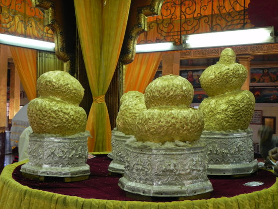 Einen kurzen Spaziergang vom Restaurant entfernt steht die Phaung Daw U-Pagode die ein weiteres Top-Heiligtum des Buddhismus beherbergt. Es handelt sich um 5 kleine Buddhastatuen, bereits zur Unkenntlichkeit von Pilgern vergoldet.