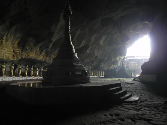 Wir starten unseren Tag mit einer Höhlenbesichtigung - kein Vergleich mit jener von Moulmein, wir bleiben sauber und trocken!