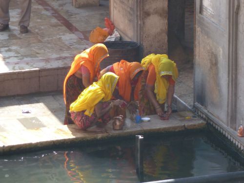Am Affentempel waschen sich die Frauen mit heiligem Wasser.