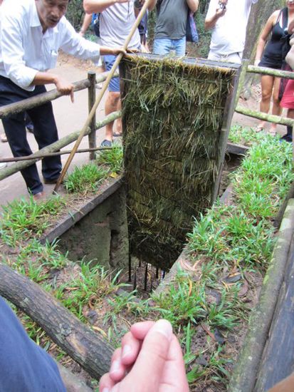 Am nächsten Morgen ging es dann um 8:00 Uhr (ja, wir sind Frühaufsteher ) mit einem VIP-Bus, ich nenne Ihn mal Kackfass, zu den Cu Chi Tunnelsystemen, die ein Relikt aus diversen Kriegen in Vietnam sind, gefahren. Dort gab es neben den Tunneln auch einen recht informativen Pfad, auf dem allerhand aus dem Kriegsgeschehen zur Schau gestellt wurde. Die Tunneldurchwanderung war nur was für Leute, die nicht claustrophobisch veranlagt sind. Obwohl der Querschnitt der Tunnel für die Touris um 40% vergrößert wurde, haben Yps und ich nach ca. 20 Metern unter Tage das Handtuch geworfen und den ersten Ausgang Richtung Tageslicht genommen. Michael hat sich die volle Breitseite gegeben und hat noch 20 Meter drangehängt. Respekt an dieser Stelle, und dass mit Bandscheibe . Er lief noch eine gefühlte halbe Stunde im gebückten Gang, obwohl er eigentlich schon wieder aufecht stehen konnte. Crazy Scheiss! Um das Ganze abzurunden hat er sich dann noch 10 Schüsse mit der AK 47 gegönnt. Das war mal richtig laut! Alles in Allem hat sich dieser Trip gelohnt und wir waren ziemlich garr und um 16:00 Uhr wieder in userer Bude.