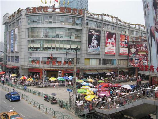 Die Nanjing Lu ist ab hier bis zum Peoples Park (Volksgarten) zur Fussgängerzone zurückgebaut. Früher war die Nanjing Lu 25 Stunden am Tag verstopft mit hupenden Bussen, Taxis, Autos und Mopeds. Dazwischen noch all die drängelnden Radfahrer und Fussgänger, heute macht das Bummeln hier wieder so richtig Spass.