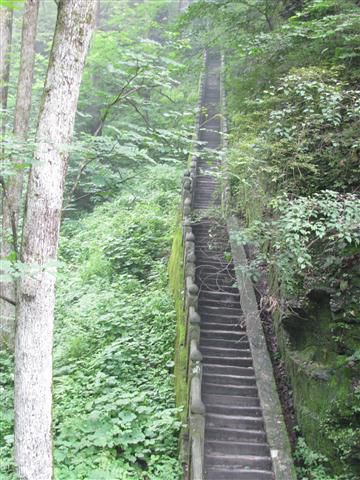Links halten, und auf der gut ausgebauten, 1,8 km langen Qing Dynastie Strecke sofort die '100 Stufen' hoch und dann stetig aufwärts zum 'Golden Summit' wandern, oder