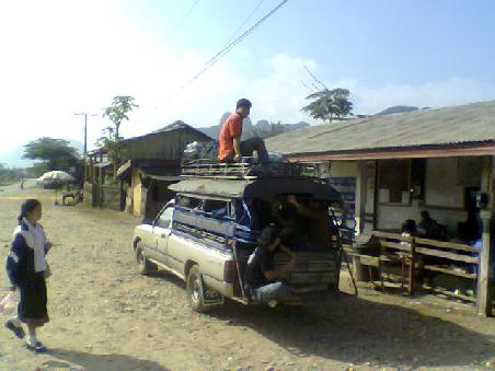 Hierzu war Urspuenglich die Wahl eines Buses als Transportmittel geplant. Nur das diese leider alle ausgebucht waren. So ging wieder einmal zusammen mit den einheimischen ueber 4 h auf der umfunktionierten Ladeflaeche eines Pickups (hier ein uebliches Transportmittel) weiter.