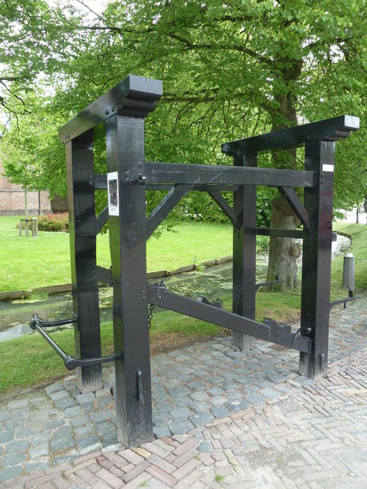 Dann sehen wir ein hölzernes Gestell, dessen Funktion un s erst durch ein angebrachtes Foto klar wird. (In Zieriksee werden wir dann Genaueres zu dokumentieren haben)