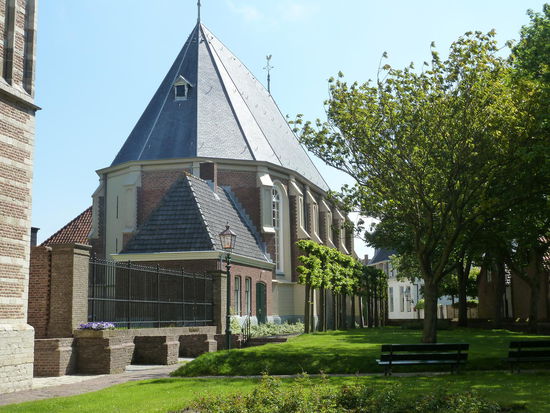 Noordgouwe ist ein winzig kleiner Ort auf Schouwen-Duiveland - wie bei so vielen Orten in dieser Gegend liegt die Kirche auf einer 'Insel'. Das bis zur Reformation den Heiligen Drei Königen geweihte Gotteshaus wurde ab 1462 unmittelbar neben dem 1434 gestifteten Kartäuserkloster Sion of de Berg Sion als einschiffige Kirche erbaut.