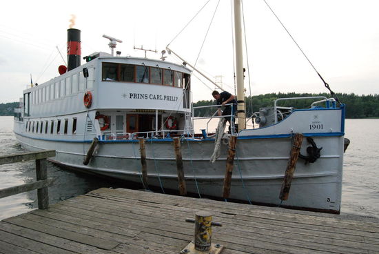 Am nächsten Tag ging es wieder mit dem Schiff zum Schloß Drottningholm. Etwas unterhalb des Campingplatzes lag die Anlegestelle. Durch ein Signal (Semafor) mußte man anzeigen, daß man zusteigen möchte. Dann ging es durch die Schären zum Schloß, wo Königs wohnen. Wir wollten uns nicht nur den Park ansehen, sondern auch das Schloß und das China-Schloß, das weiter hinten im Park liegt. Es gibt noch eine ganze Reihe andere Gebäude, darunter auch das alte Theater. Es wurde 1766 gebaut und war bis zu Gustaf IIIs Tod 1792 in Betrieb. Danach geriet es vollkommen in Vergessenheit, bis es 1921 zufällig wiederentdeckt wurde. Die einzigartige Szenenmaschinerie ist ganz aus Holz, wird per Hand bedient und ist vollständig erhalten. Heutzutage wird es wieder regelmäßig benutzt. Hier