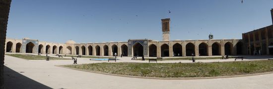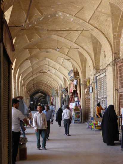 The Bazar-e Ekhtiari leads east from the square and passes the Hamam-e Vakil Chaykhaneh before becoming the Bazar-e Vakil; both are about 150 years old. After about 600m the covered bazaar ends and the 700-year-old open-air Bazar-e Mosaffari begins, though there is little evidence of such antiquity. The Jameh Mosque can be entered from this bazaar, and you can then walk through to Shohada Sq.