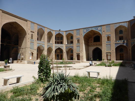 Nach dem Frühstück laufen wir zunächst durch den Basar von Kerman. Es ist ein riesiger Komplex mit sich überkreuzenden bis zu 700m langen überdachten Ladenstraßen, zu dem sowohl mehrere Moscheen als auch Hammam(s) gehört (haben). Man merkt hier, dass es sich um einen reinen Markt für die Bevölkerung handelt, denn es sind keinerlei touristische Artikel zu finden. Wir erstehen echten iranischen Safran und den bestens bekanntem Kerman-Kümmel.