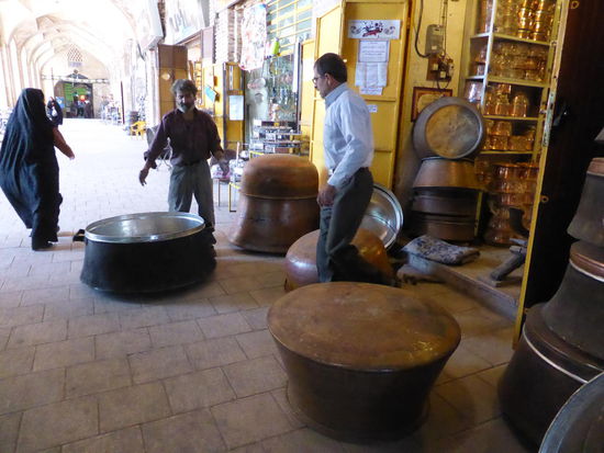 Und schließlich werfen wir - zurück am Eingang - noch einen Blick auf die Kesselflicker, bevor wir gegen 11.00 Uhr etwa 35 km Richtung 'Pakistan' nach Mahan fahren.
