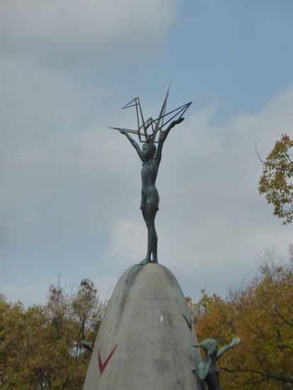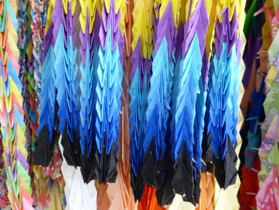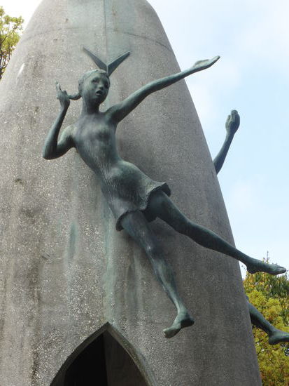 Am Denkmal des überlebenden Mädchens Sadako bewundern wir die jährlich von Kindern hergestellten Kraniche. Sadako war zwei Jahre alt, als sie von den Strahlen der Bombe getroffen wurde. Mit 10 jahren erkrankte sie an Leukämie und wurde ins Rote-Kreutz-Krankenhaus aufgenommen. Mit den Schmerzen der Krankheit kämpfend, faltete sie viele Kraniche in der Hoffnung auf Gesundung. Sie verlor den achtmonatigem Kampf. Ihre Geschichte wurde zu einem Symbol der internationalen Friedensbewegung und des Widerstandes gegen den Atomkrieg.