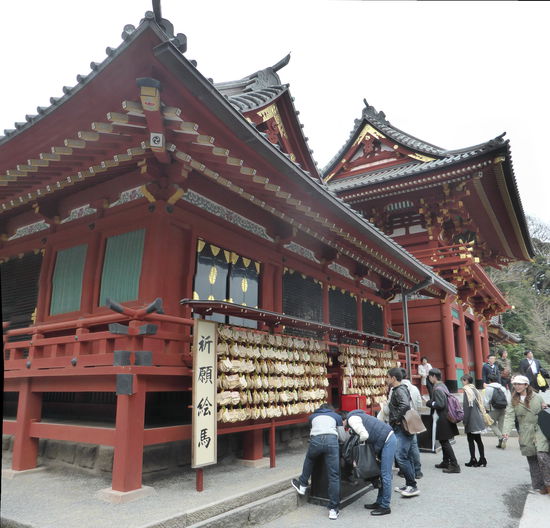 Es gibt eine Anzahl von Schreinen an diesem Ort, die wichtigsten sind der jüngere Schrein auf Erdniveau und der ältere Schrein 61 Stufen darüber. Der heutige "Ältere Schrein" wurde 1828 von Tokugawa Ienari, dem 11. Tokugawa-Shogun errichtet.