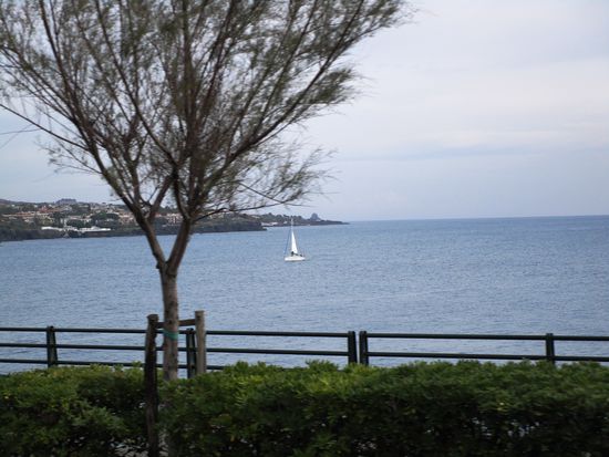 Auch hier sind einige Bilder im Vorbeifahren möglich. Heute am Sonntag sind viele Jogger unterwegs. Menschen spazieren gemütlich am Meer entlang, manche begleitet von ihren Hunden. Prächtige Blumen sind an den Häusern zu sehen. Und besonders schön, die vielen Segelboote auf dem Meer. Ja, es ist ein herrlicher Tag. In der Ferne sehen wir den Ätna. Und immer mal wieder sind kleine Gebetsnischen zu entdecken. Am Hotel Four Points steigen einige Gäste zu. Die Fahrt führt am Meer entlang und wir haben sehr schöne Ausblicke.