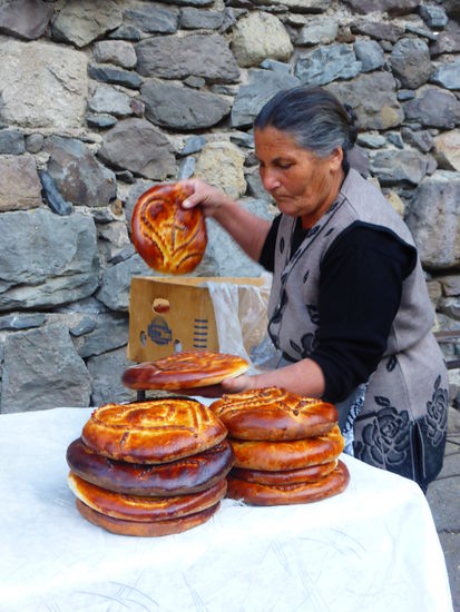 Selbst am Eingang sind die Souvenirverkäufer noch dabei ihre Waren auszupacken. Dabei duftet es toll nach frischem Brot. Ansonsten werden überwiegend Nüsse und getrocknetes Obst angeboten.