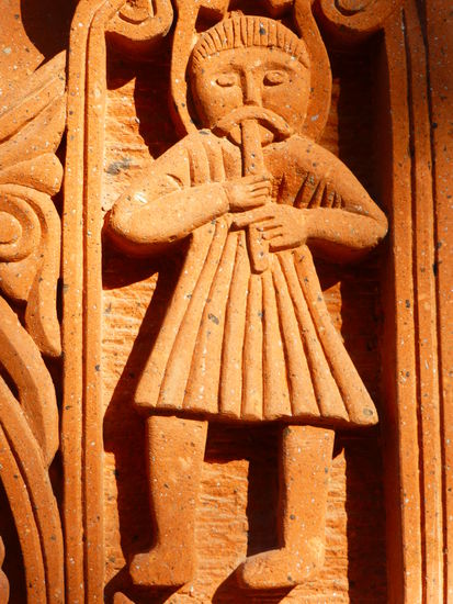 Die Außenmauern haben tiefe, dreieckige Nischen sowie viele Reliefs in Form geometrischer, tierischer und floraler Motive -