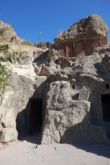 Im Außenbereich befinden sich noch weitere Kapellen, die in den Felsen gehauen und nur über steile Treppen zu erreichen sind.