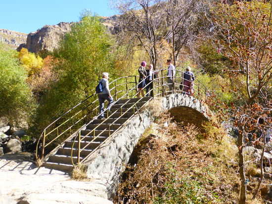 Außerhalb im oberen Teil der Schlucht liegt etwas versteckt eine alte Brücke, von der man einen guten Blick auf die Kirche hat.