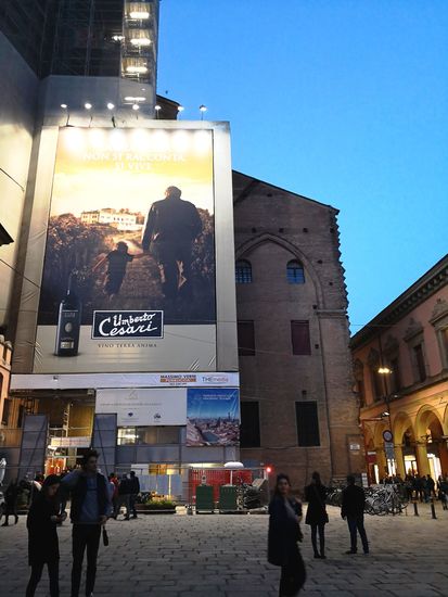 Nachdem wir uns in der Kirche lange umgeschaut und gestaunt haben über die Pracht, schauen wir uns noch den kleinen Piazza Galvani mit der Statue Luigi Galvani an. Es ist schon fast dunkel und alles ist wunderschön beleuchtet.