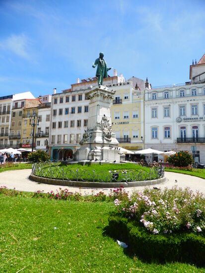 Das alte Santa Clara-Kloster - Mosteiro de Santa Clara-a-Velha - liegt in der Nähe der Estrada Nacional No 1, nicht weit vom linken Ufer des Mondego-Flusses entfernt. Durch häufige Überschwemmungen wurde die Klosteranlage zur Ruine. Schon gegen Ende des 17. Jahrhunderts waren die Gebäude nicht mehr bewohnbar. Im Jahr 1286 gegründet, wurde der Bau infolge wiederholter Unterbrechung der Arbeiten erst im 14. Jahrhundert vollendet. Berühmt ist das Kloster vor allem, weil die Königin Isabella, die als Heilige verehrt wird und deren Grabmal sich dort befindet, sich bis zu ihrem Lebensende in Santa Clara aufhielt. Es wird auch berichtet, König Duarte, ältester Sohn Heinrich des Seefahrers, habe seine Hochzeit im Kloster gefeiert. Zu erwähnen ist noch die Neue Kathedrale, die Se Nova, aus dem 17. Jahrhundert mit ihrer prunkvollen Barockfassade. Ursprünglich war die Kathedrale eine Jesuitenkirche und Teil des Kollegs der Elftausend Jungfrauen.