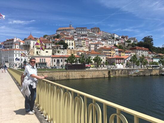 Die uns zur Verfügung stehende Zeit reicht noch, um über die Brücke in Richtung des vom Universitätsplatz gesichteten zweiten Klosters zu gehen. Dabei ergibt sich ganz nebenbei ein schönes Gesamtbild von Coimbra.