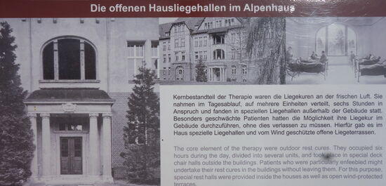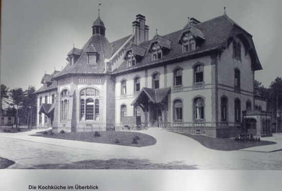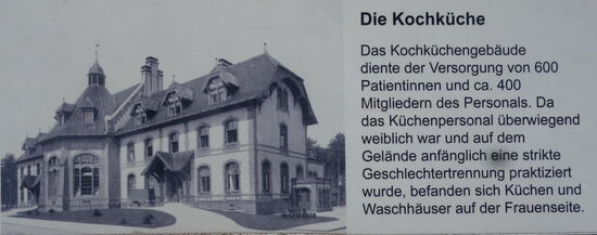Frauenpavillon - die Bereiche waren jeweils nach Geschlechtern getrennt: südwestlich der Landstraße die Frauen-Heilstätten und -Sanatorien, nordöstlich derselben die Männer-Heilstätten und -Sanatorien.