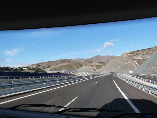 Noch eine Nacht auf einem winzigen Campingplatz für irres Geld im Hinterland, dann nehmen wir die letzte Etappe in Spanien. Sturmfahrt durch Andalusien. Der Sturm ist so schlimm, dass Manfred das Lenkrad mit zwei Händen klammern muss. Trotzdem versetzt das Auto manchmal um einen Meter zur Seite. Als wir in Tarifa ankommen regnet es in Strömen und das Meer rollt mit wahnsinniger Wucht aufs Ufer.