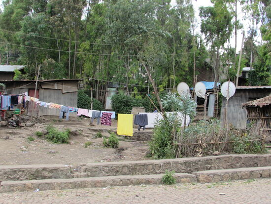 Am Vormittag geht Matthias Flug von Lalibela nach Addis Abeba. Doch ehe wir uns verabschieden ziehe ich mit Sylvia noch ins Top 12 Hotel um. Es hat tolle Zimmer und eine Terrasse mit super Aussicht über die Berge
