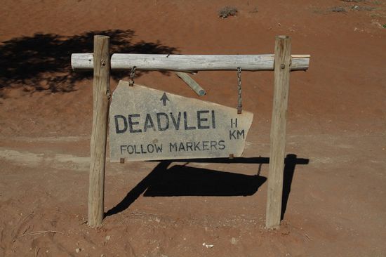 Es macht keinen Unterschied ob man um 7-8-9Uhr dort ist. Meiner Meinung nach alles Quatsch was in diversen Foren geschrieben wird. Der einzige Vorteil den es gibt ist, wenn man INNERHALB des Parks uebernachtet kann man wohl ca. 30min vor der normalen Gateoeffnung bereits losfahren. Na ja, wir waren jetzt halt auch die Ersten die im Park waren. Fuer alle Fotografen: Das Licht mit Schattenseite an den Duenen ist am fruehen Morgen das Beste, jedoch um die Mittagszeit ist die Farbe der Duenen auf dem Weg zum Vlei die Beste- schoen rot. Alles Andere ist eigentlich Humbuk. Bevor man wirklich ins Vlei darf muss man sich erst eine Erlaubnis kurz hinter dem Gate rechts an der Rezeption holen.
