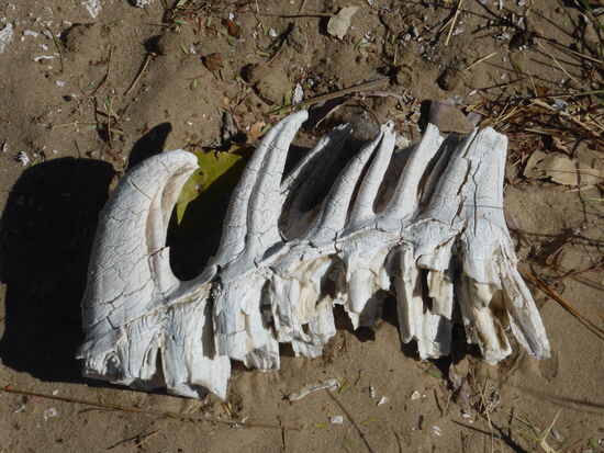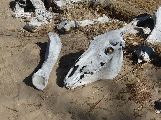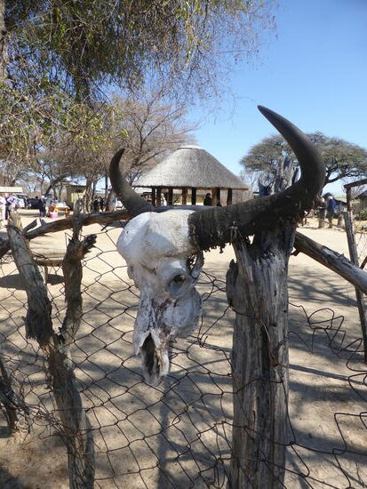 Es ist immer noch merklich kalt – und man behält die letzte Zwiebel noch an. Zahlreiche Knochen, Schädel und Gebisse sind in der Umzäunung ‚ausgestellt‘.