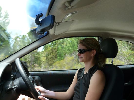Am naechsten morgen sind wir sehr frueh aufgestanden und Richtung Garden Route weitergefahren. Wir haben eine Strecke von 400 Kilometern zurueckgelegt. Das geht hier in Suedafrika sehr gut, da die Strassen perfekt ausgebaut sind und man bis auf wenige Ortschaften die ganze Zeit zwischen 100 - 120 fahren darf. Witzigerweise auch auf einspurigen kurvigen Strassen. Unser Zwischenstop sollte Mossel Bay sein. Mossel Bay ist der Beginn der Garden Route. Die Stadt hat uns wegen ihrer vielen Industriegebiete nicht gefallen. Schoener war es zu sehen, wie sich mit dem Beginn der Garden Route innerhalb weniger Kilometer die Landschaft veraendert hat. Von endlosen Feldern und Farmen veraenderte sich das Landschaftsbild auf Seen und Waelder. Leider sind es nicht mehr die urspruenglichen Waelder dieser Region, da diese von den Kolonialherren in der Kuestenregion nahezu vollstaendig abgeholzt wurden. Dennoch ist die Landschaft sehr schoen und hat uns ganz stark an zu Hause erinnert. Komisch, da fliegt man so weit und hat das Gefuehl, als waere man auf der Sauerlandlinie unterwegs. Gegen Mittag sind wir in Plettenberg...diesen Ort gibt es ja auch im Sauerland...angekommen. Hier gibt es dann gluecklicherweise auch ein paar Unterschiede zu heimischen Gefilden. Plettenberg hat eine atemberaubende Bucht mit einer anschliessenden Lagune. Diesen Anblick haben wir nach unserer Ankunft erstmal lange auf uns wirken lassen.